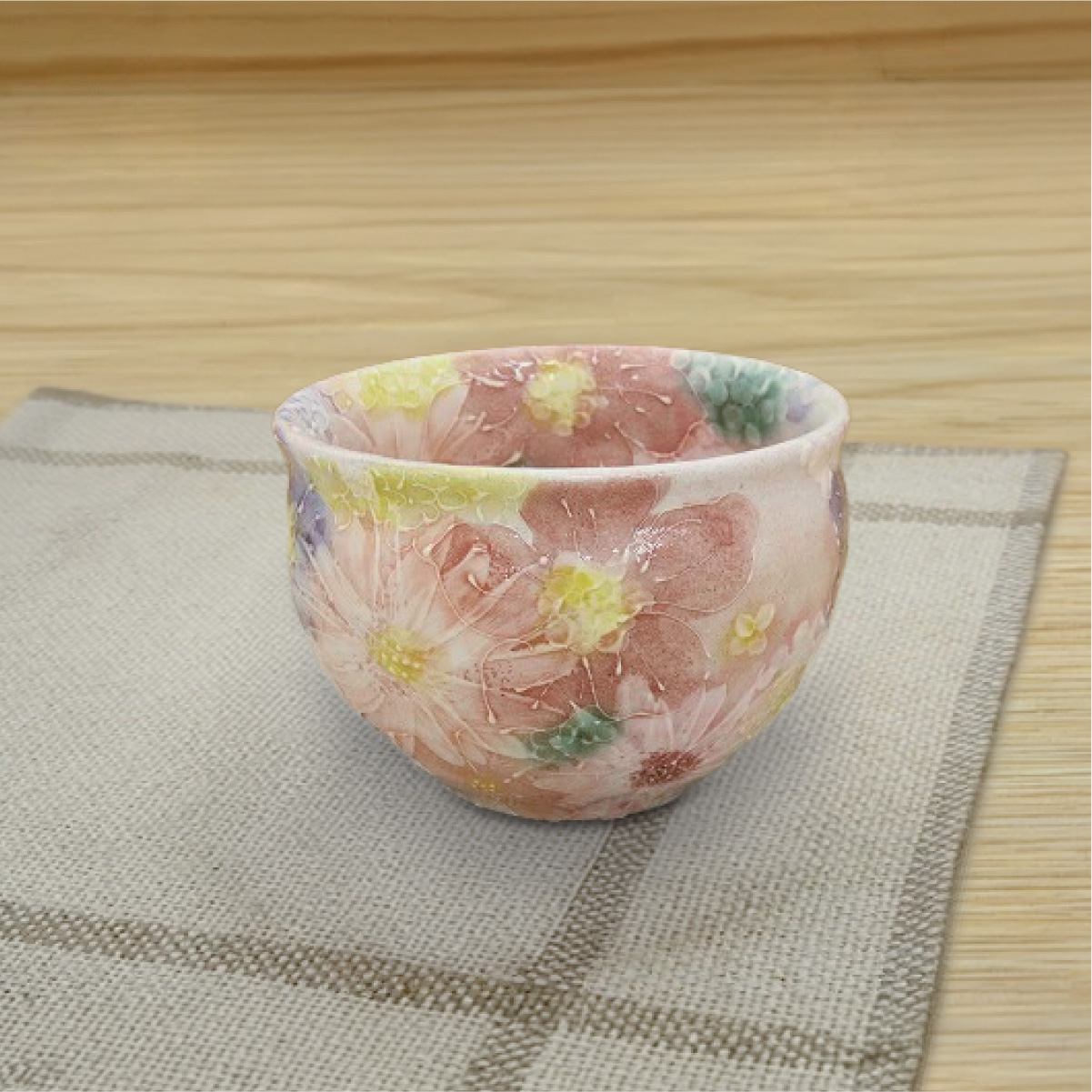 重なり合う花の色彩が、ひと口の時間に彩りを添えます。